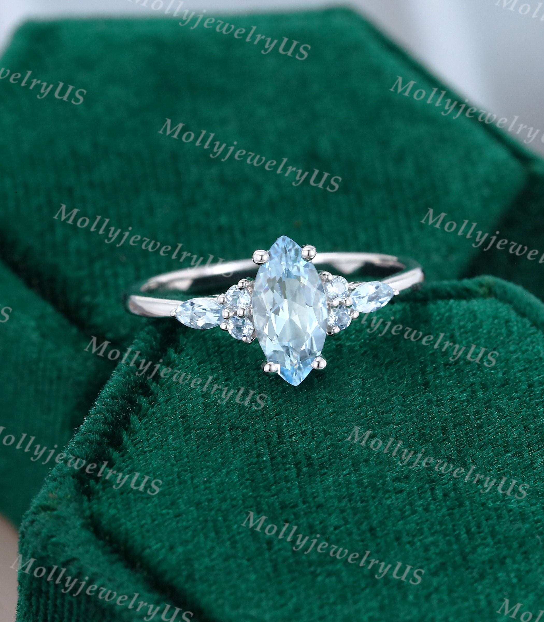 Marquise Aquamarine Engagement Ring Vintage Snowflake Ring Etsy Finland